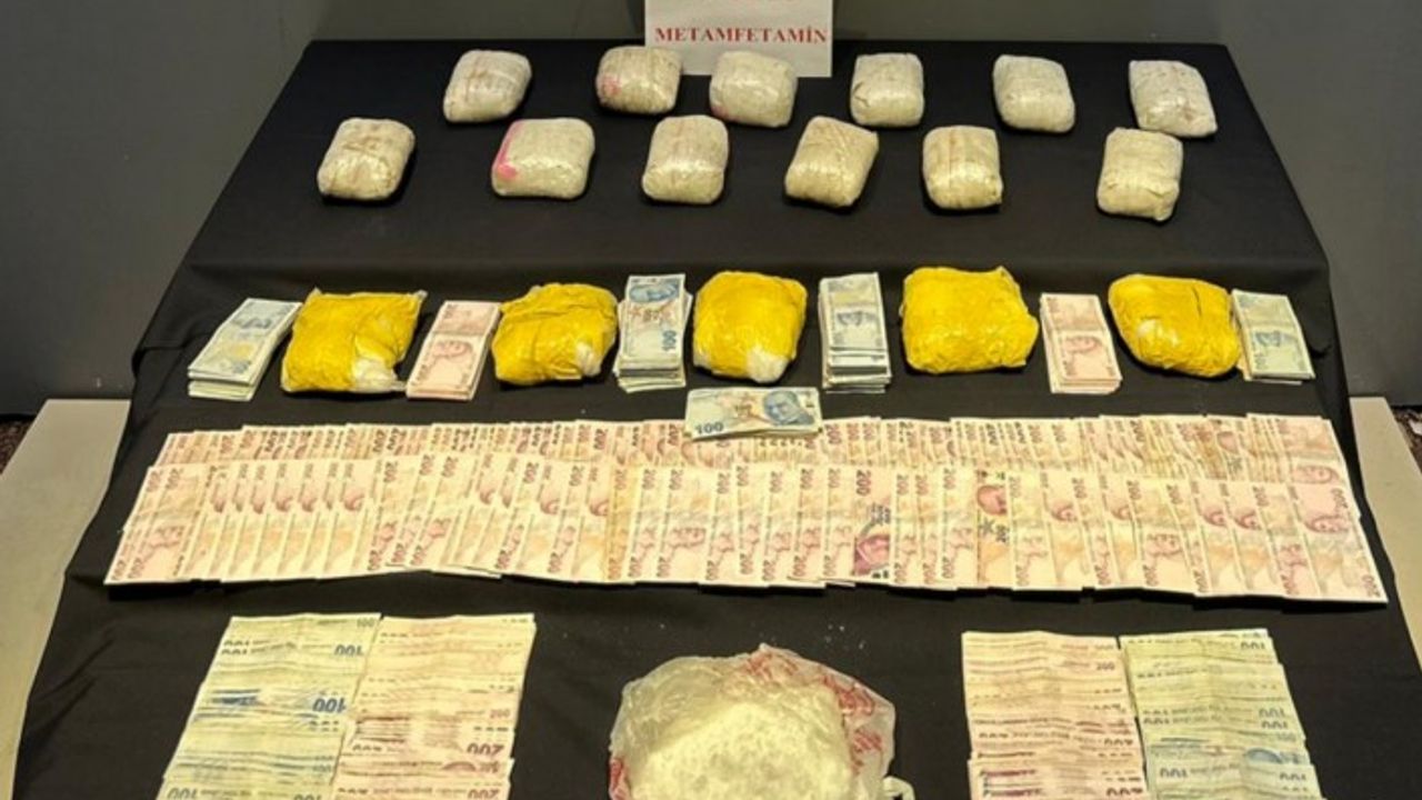 Narkotik Suçlarla Mücadele Şube Müdürlüğü  görevlilerince uyuşturucu ile mücadele kapsamında yapılan çalışmada 10 kilo 930 gram Metamfetamin ile Uyuşturucu madde ticaretinden elde edildiği değerlendirilen 135 bin 940 TL  ele geçirilmiş konu ile ilgili A.D ve M.D  isimli şahıslar gözaltına alınmış olup işlemlerinin ardından adli makamlara sevk edilecektir