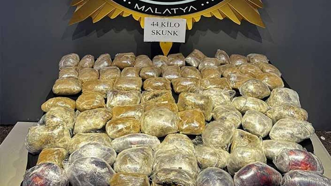 Malatya’da Emniyet Müdürlüğü ekiplerince iki araca düzenlenen operasyonda 44 kilogram skunk ele geçirilirken, 3 kişi gözaltına alındı.