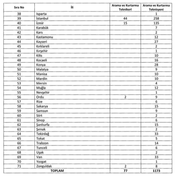-Arama ve Kurtarma Teknikeri olarak istihdam edilecek kadro sayısı 77. Başvuru sayısı yapılacak il sayısı 26