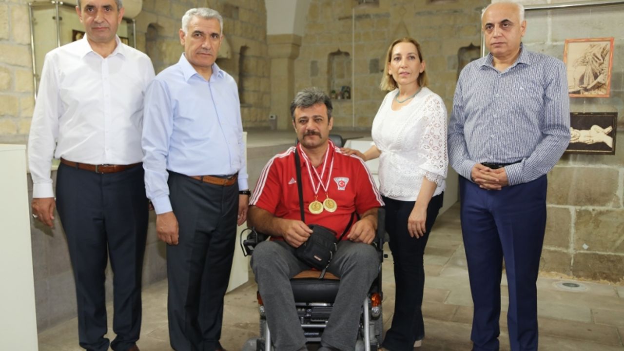 Battalgazi Belediye Başkanı Osman Güder, 15 Temmuz Engelliler Atletizm Şampiyonası’nda gülle ve disk atma alanında Türkiye birincisi olan Fatih Batı’yı tebrik etti.