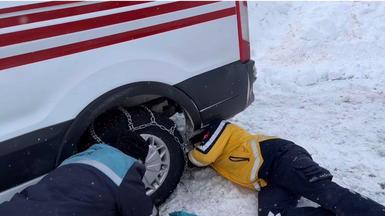 Yaygın Mahallesi’ne bağlı Seyrekler Mezrası’nda yaşayan 75 yaşındaki kalp hastası Burhan Polat’ın rahatsızlanması üzerine bölgeye yönlendirilen 112 ekipleri, karla kapanan yollar nedeniyle ilerleyemedi. Bunun üzerine Battalgazi Belediyesi’nden destek istendi. Belediye ekipleri iş makineleriyle yolu açarken, ambulansın ilerleyebilmesi için araca zincir takarak yardımcı oldu.