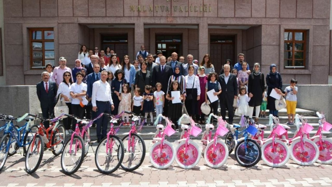 Vali Kaban, Çevre ve Tasarruf konulu resim yarışmasında dereceye giren 5 öğrenci ve atık yağ toplama kampanyasında dereceye giren 10 öğrenciye teşekkür belgesi ile birlikte bisiklet ödüllerini verdi.