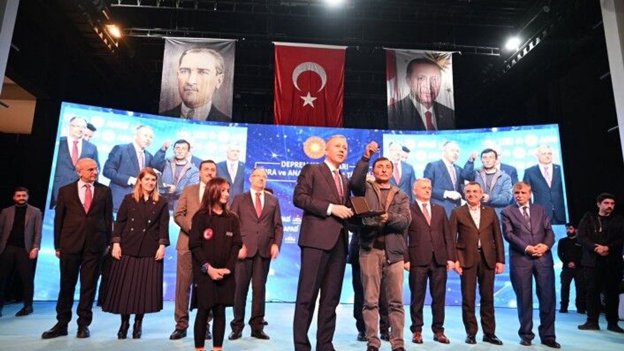 İçişleri Bakanı Ali Yerlikaya, “Nasip bugüneymiş. Çevre, Şehirçilik ve İklim Değişikliği Bakanı Mehmet Özhaseki Bakanımız küçük bir sağlık rahatsızlığa nedeniyle gelemedi. Sayın Cumhurbaşkanımız Recep Tayyip Erdoğan’ın selamlarını getirdim. Her ay 15-20 bin konut Sayın Cumhurbaşkanımızın talimatı ile 11 ilimizde hak sahiplerine teslim edilecek, o büyük felaketin sene-i devriyesinde 75 bin konut, her ay 15-20 bin, sene sonuna kadar 200 bin konut teslim edilecek. Sayın Cumhurbaşkanımızın size verdiği sözün gerçekleşme anı.” dedi.