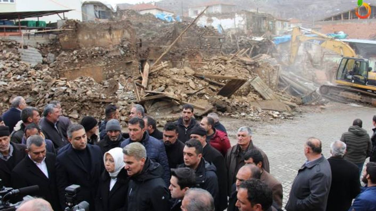 Milletvekili Çalık, Vali Aydın Baruş, AK Parti İl Başkanı İhsan Koca ve Doğanyol Belediye Başkanı Hakan Bay, Doğanyol’un Gökçe mahallesine geçerek burada depremde hasar gören binaların yıkımını takip etiler.