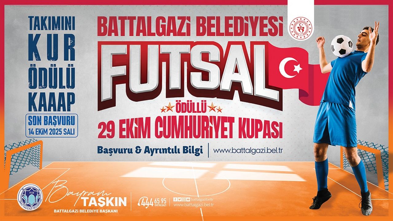 Battalgazi Belediyesi, 29 Ekim Cumhuriyet Bayramı dolayısıyla düzenleyeceği Futsal “29 Ekim Cumhuriyet Kupası” ile sporseverleri bir araya getirmeye hazırlanıyor. 16 yaş ve üzeri katılımcılara açık olan turnuva, gençleri spora teşvik etmeyi ve Cumhuriyet coşkusunu sahaya taşımayı amaçlıyor.
