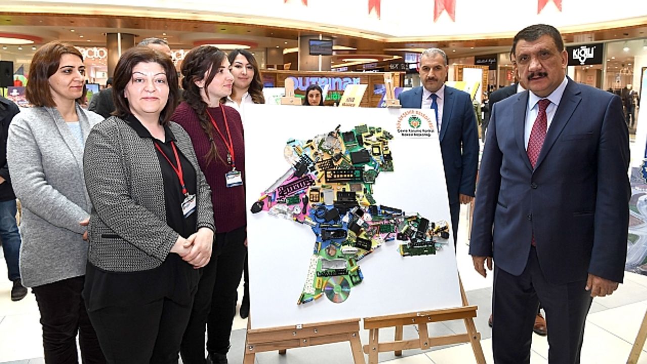 Gürkan, “Burada kâğıttan ve poşetten elbiseler, elektronik atıklardan haritalar, kâğıt ve plastik atıklardan oyuncaklara kadar birçok ürün sergileniyor. Bu anlamlı projede emeği geçen tüm öğretmenlerimizle öğrencilerimizi, onları destekleyen velilerimizi ve geri dönüşüm eğitimlerini hayata geçiren mesai arkadaşlarımızı kutluyor, çevre hassasiyetlerinden dolayı herkese teşekkür ediyorum” dedi.