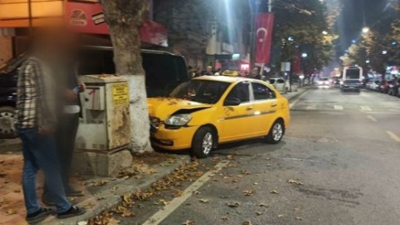 Kaza, akşam saatlerinde Sivas caddesinde meydana geldi. Minibüs ile taksi çarpıştı. Kontrolü kaybederek ağaca çarpan taksi hurdaya dönerken, taksi sürücüsü ise yaralandı.
