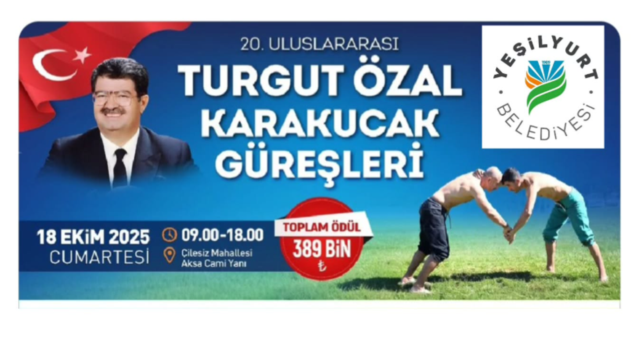 Gençlik ve Spor Bakanlığı, Yeşilyurt Kaymakamlığı ve Türkiye Geleneksel Güreşler Federasyonun destekleriyle Malatya Büyükşehir Belediyesi ve Yeşilyurt Belediyesinin ortaklaşa düzenleyeceği 20.Uluslararası Turgut Özal Karakucak Güreşleri,18 Ekim Cumartesi günü saat 09:00 ile 18:00 arasında Çilesiz Aksa Caminin yan tarafında ki alanda sporseverlerle buluşacak.