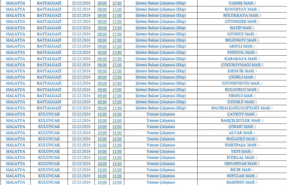 Malatya'da 22 Aralık pazar günü  217 mahallede yatırım çalışması nedeniyle planlı elektrik kesintisi olacak. Peki Malatya'da Hangi Mahallelerde Elektrik Kesintisi Yaşanacak?