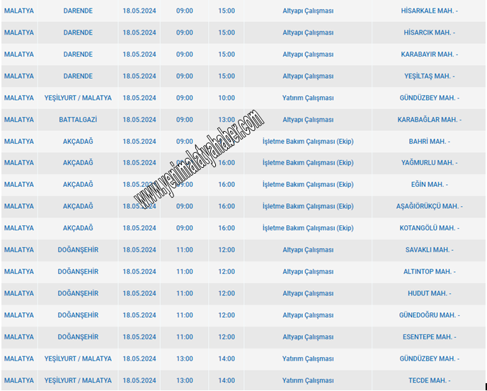 Malatya'da Hangi Mahallede Elektrik Kesintisi Olacak. Son dakika... Malatya'da 18-19 Mayıs günleri 52 mahallede elektrik kesintisi yaşanacak. Malatya Aksa -Fırat Edaş elektrik arıza telefon no .