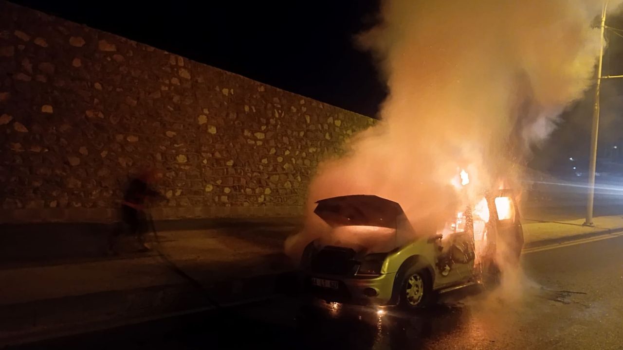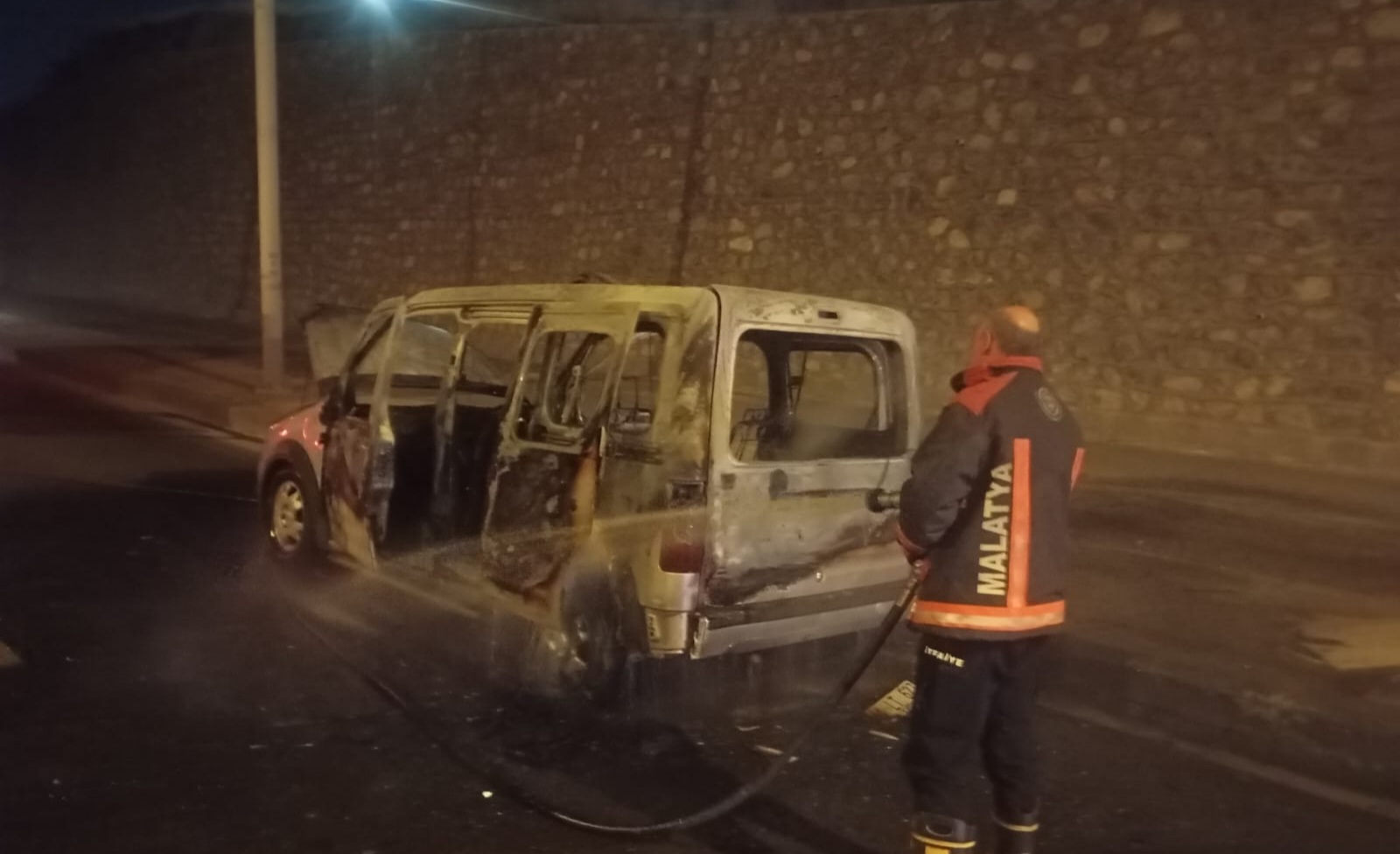 Malatya'da dün gece meydana gelen olayda bir araç alev alev yandı.