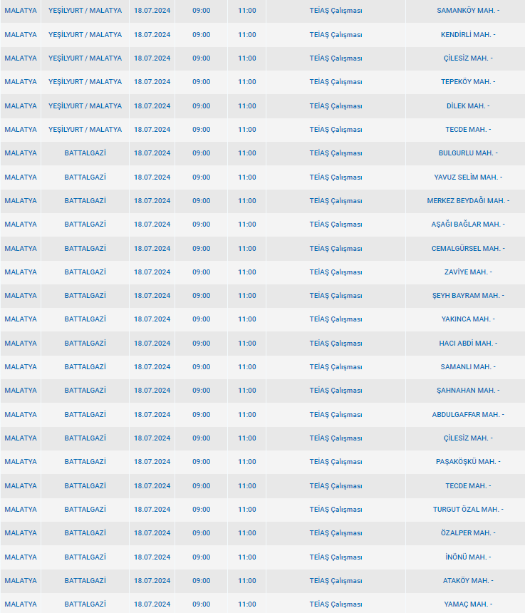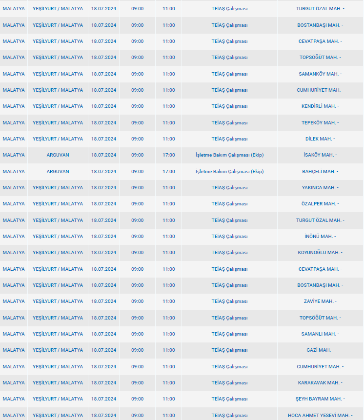 Malatya'da Hangi Mahallede Elektrik Kesintisi Olacak. Son dakika... Malatya'da 18 Temmuz günü 59 mahallede elektrik kesintisi yaşanacak. Malatya Aksa -Fırat Edaş elektrik arıza telefon no .