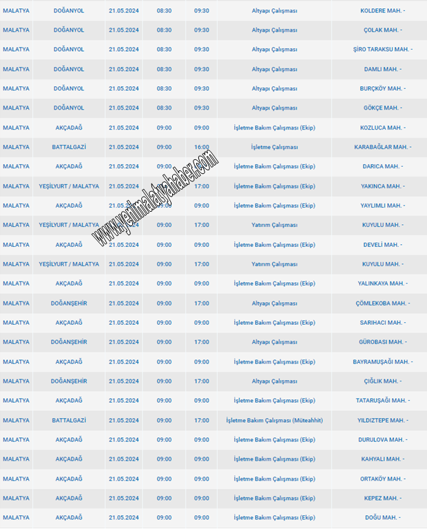 Malatya'da Hangi Mahallede Elektrik Kesintisi Olacak. Son dakika... Malatya'da 21 mayıs günü 96 mahallede elektrik kesintisi yaşanacak. Malatya Aksa -Fırat Edaş elektrik arıza telefon no .