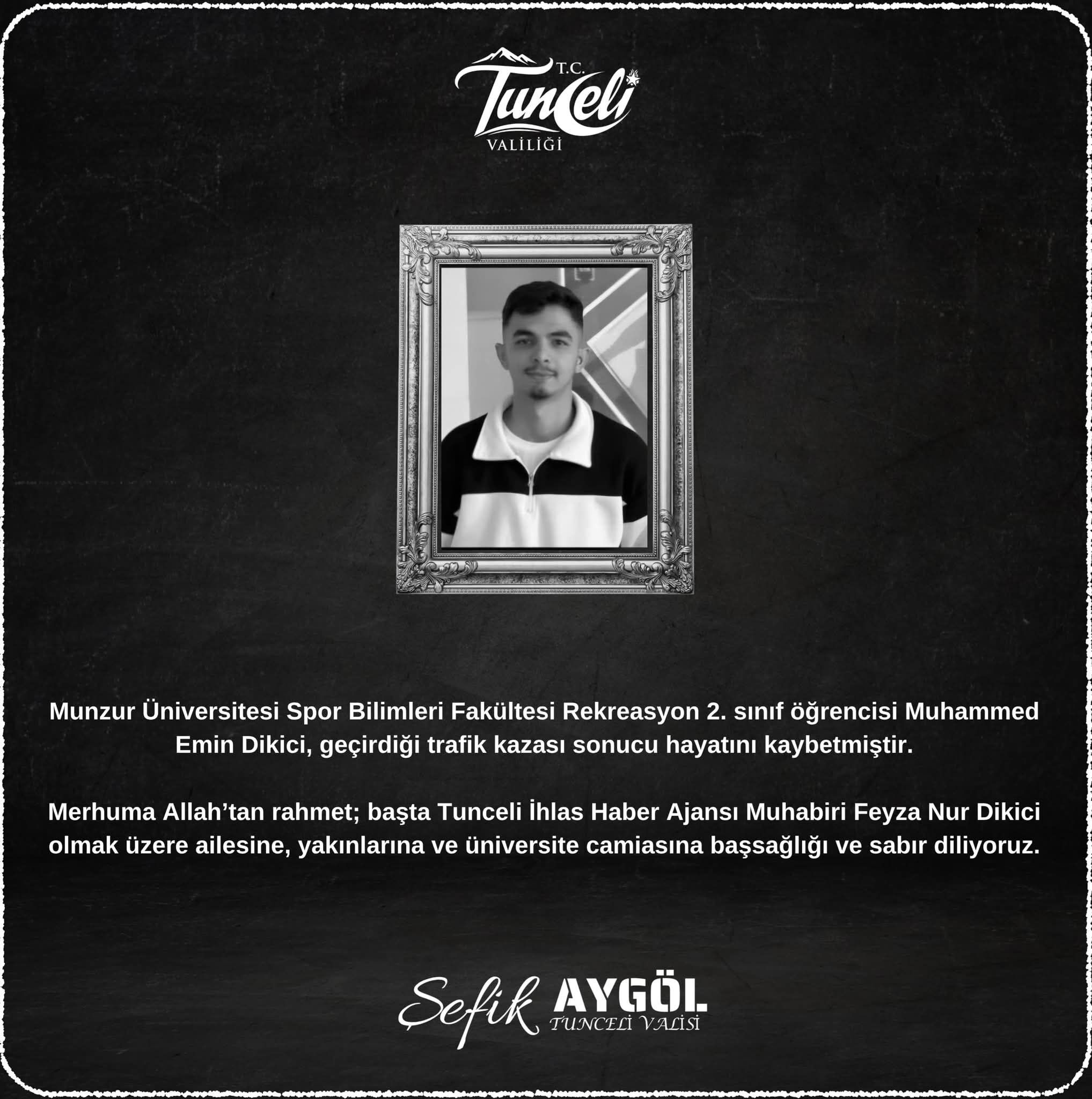 Munzur Üniversitesi Spor Bilimleri Fakültesi Rekreasyon Bölümü 2. sınıf öğrencisi olan Dikici’nin, derslerinden arta kalan zamanlarda kuryelik yaparak okul masraflarını karşılamaya çalıştığı öğrenildi. Genç öğrencinin karıştığı trafik kazasının ardından olay yerine sevk edilen sağlık ekipleri tarafından yapılan tüm müdahalelere rağmen kurtarılamadığı bildirildi.