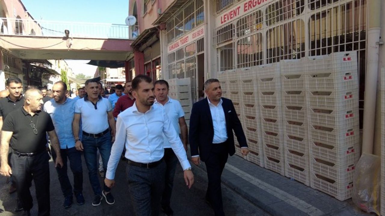 Şire Pazarı esnafını tek tek gezerek üreticilerle sohbet eden Sadıkoğlu, sorunları dinleyip, talepleri not aldı.