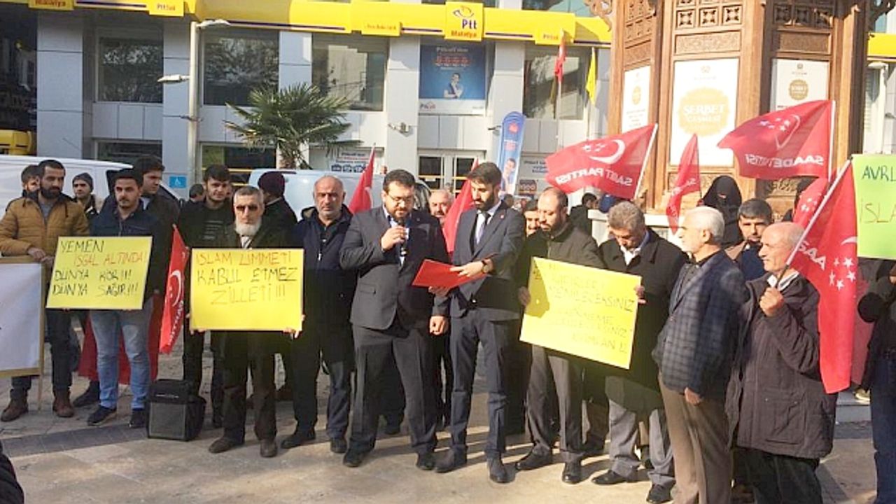 Saadet Partisi (SP) Malatya İl Gençlik Kolları tarafından, Yemen’de yaşanan olaylara tepki amacıyla bir basın açıklaması yapıldı.