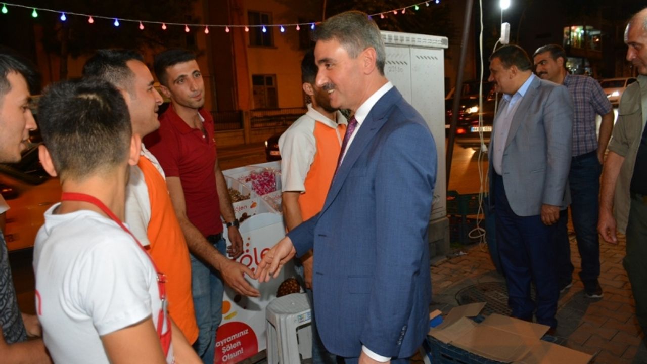 Vali Aydın Baruş Kurban Bayramı dolayısıyla gecenin geç saatlerine kadar faaliyet gösteren esnafların ve vatandaşların bayramını kutladı.